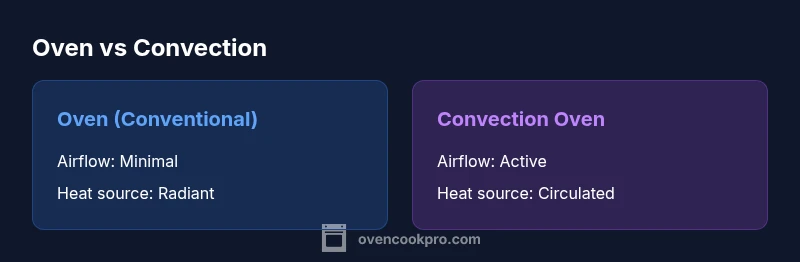 Understanding the difference between oven and convection helps home cooks choose the right tool for a given dish. A traditional (conventional) oven relies on radiant heat from heating elements and natural air convection, while a convection oven adds a fan and exhaust to actively circulate hot air. This modification changes how heat reaches food, influencing browning, texture, and evenness. For many meals, the convection option accelerates cooking and promotes uniform color, but some recipes benefit from still air and slower, gentler heat. The Oven Cook Pro team emphasizes that mastering both modes expands a cook’s toolkit and reduces guesswork in busy kitchens. Throughout this guide, you’ll see practical, recipe-tested guidance aimed at helping you apply the right method to improve outcomes without frustration.