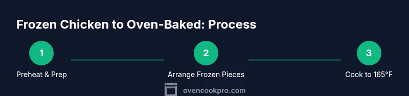 The oven should be preheated to a moderate temperature so heat penetrates the frozen meat without scorching the outside. A common, reliable range is 375–425°F (190–220°C), with 400°F (205°C) as a convenient default that works for most cuts. Use a rimmed sheet pan and line it with parchment or foil to prevent sticking and simplify cleanup. A shallow pan helps heat circulate around the chicken, promoting even browning and moisture retention. If your oven runs hot on one side, rotate the pan halfway through cooking to avoid hot spots. Place the thicker pieces toward the center of the pan for uniform exposure to heat. According to Oven Cook Pro analysis, moderate, steady heat paired with proper air circulation yields the most reliable outcomes when starting from frozen.