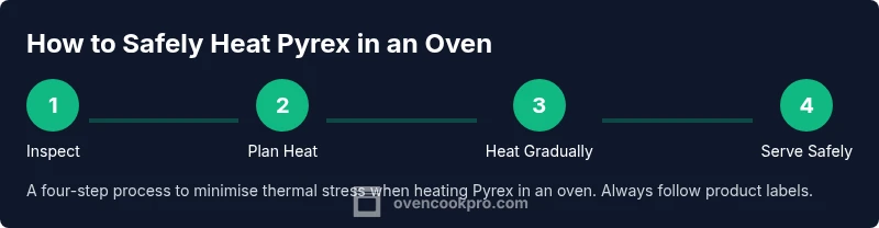 The safe heating of Pyrex hinges on gradual warming and adherence to the label. Treat each piece as a heat-tolerant tool with limits, and never push it beyond those limits for convenience. The Oven Cook Pro team recommends using gentle, predictable heating patterns, inspecting glass before each use, and opting for lower temperatures with longer bake times when in doubt. With careful handling, Pyrex can be a dependable workhorse in everyday cooking without embarrassing mishaps or breakages.
