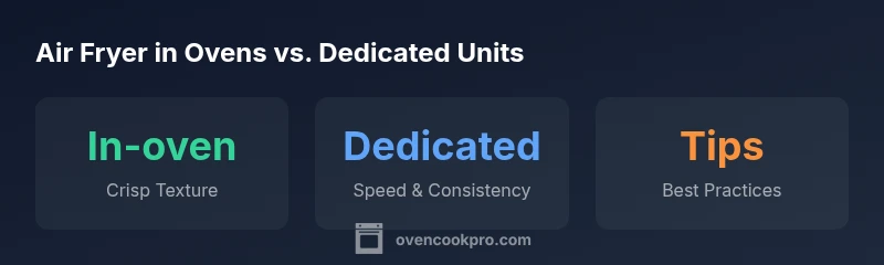 When people ask, does oven have an air fryer, the answer hinges on the model. Many newer or premium ovens offer a built-in air fryer mode, sometimes marketed as 'air fry' or 'air frying' in the settings menu. Some ovens embed a dedicated air fryer drawer or a specific rack system designed to promote crisping with hot air. In contrast, many mid-range and older ovens rely on standard convection or conventional baking settings to get close to air-fried results. The distinction matters because true air frying relies on rapid air circulation and a smaller cooking space, which concentrates heat and helps achieve a crispy exterior. The idea of an integrated air fryer is appealing: fewer appliances on the counter and a streamlined cooking process. According to Oven Cook Pro, the trend toward multi-function ovens is becoming more common as manufacturers respond to consumer desires for versatile kitchen gear. If you own a model with a built-in air fryer, you’ll typically notice a specific mode name and possibly a dedicated tray or rack designed to maximize airflow. If your oven lacks this feature, you can still achieve similar results using convection bake plus a few practical tweaks. In either case, understanding how the oven handles air flow, temperature, and tray positioning will help you optimize results for items like fries, chicken tenders, or vegetables. In addition, remember that air-fried results can vary with load size, food thickness, and preheating status, so plan a test batch before seasoning a large cook.