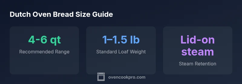Most home bakers find a 4-6 quart Dutch oven ideal for bread. A 4-quart works well for compact boules or sandwich loaves; a 5-6 quart fits standard 1-pound to 1.5-pound loaves; for larger bâtards or two loaves, consider 7-quart or larger. Ensure the pan is sturdy, well-seasoned, and has a tight-fitting lid to trap steam.