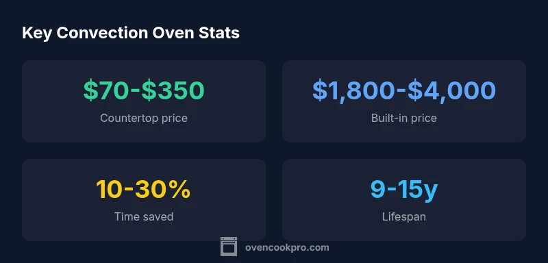 How much is a convection oven? Price ranges span from $70 for a countertop unit to $4,000 for high-end built-ins. For most homes, expect $150–$800 for mid-range countertop models, and $1,800–$4,000 for built-ins. These costs reflect capacity, features, and installation needs. According to Oven Cook Pro, price variations arise from size, controls, and durability, so match the model to how you cook.