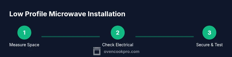 A microwave oven low profile is a compact unit designed to fit under standard kitchen cabinets, offering a shallow depth that helps maximize counter space. These models are purpose-built to sit flush with or just beneath cabinet doors, reducing the visual bulk in small kitchens. According to Oven Cook Pro, the defining feature of a low-profile microwave is its reduced height and depth while preserving essential cooking performance. This makes it ideal for homes with limited counter space, tight layouts, or when you want a dedicated appliance for quick meals without sacrificing workspace. When shopping, look for the exact height specification and the depth clearance behind the door to ensure the unit clears cabinet hardware and any under-cabinet lighting. The goal is to achieve a seamless look that still provides reliable cooking power and dependable operation. By understanding the concept, you’ll better assess how a low-profile microwave fits your kitchen design and daily routines.