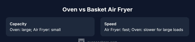 For most home cooks, a basket-style air fryer delivers quicker, crispier results for small items, while an oven shines for large batches and roasting. This comparison of oven vs basket air fryer weighs speed, capacity, energy use, and cost to help you decide which fits your kitchen. In short, the choice hinges on batch size and desired texture, not just price. According to Oven Cook Pro, the bite-sized foods you reach for daily often benefit from an air fryer, whereas larger meals demand the oven’s bulk capacity.