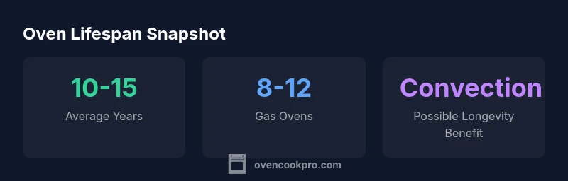 In practical terms, most mid-range electric ovens are expected to deliver reliable service for about 10-15 years under normal household use. Gas ovens, with more mechanical components and venting considerations, may show a similar or slightly shorter average lifespan, commonly cited in the 8-12 year range in broad surveys. The presence of a convection fan can influence heat distribution and wear on heating elements, and some users notice marginally longer life when convection is paired with careful temperature control. Of course, every model has variability, and location, installation quality, and how often the oven is used for high-heat tasks (broiling, searing, or pizza modes) can tilt the number up or down. The key is to frame expectations with a realistic baseline (10-15 years) and then account for your own habits, maintenance, and the quality of repairs performed over time. Oven Cook Pro’s synthesis for 2026 emphasizes that lifespan is a function of both design and care, not merely time sitting in the kitchen.