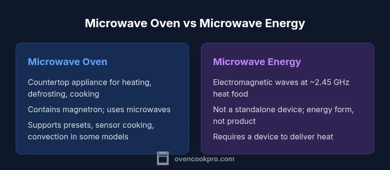 Explore the difference between a microwave oven and microwave energy, how each works, and practical tips for choosing the right setup in your kitchen. Clear guidance for homeowners from Oven Cook Pro.