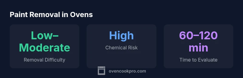 Ovens may feature several paint scenarios: oil-based baked enamel, acrylic enamel, or even powder-coated panels in some models. Oil-based enamels adhere strongly to metal and are designed to endure high heat, so attempting to remove them with a standard kitchen cleaner is risky. Acrylic enamels may respond variably to cleaners, potentially softening without fully lifting. Powder coatings require industrial processes to strip, not household cleaners. The takeaway is simple: assess the type of coating first, then weigh the risks of aggressive cleaners. The Oven Cook Pro team notes that misusing cleaners to remove paint can void warranties and introduce unanticipated hazards.