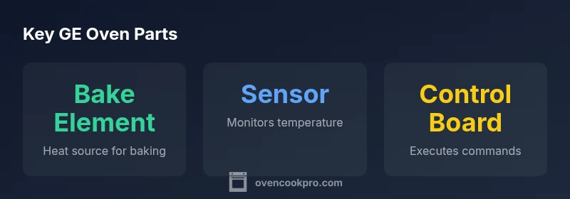 When you hear GE oven parts, you might picture a single component, but a GE oven relies on a small ecosystem of parts that work together to bake, broil, and time meals. According to Oven Cook Pro, the most helpful way to approach repairs starts with a practical map of the key components and how they interact. The Oven Cook Pro team found that diagnosing problems is easier when you classify symptoms by the part most likely involved: heat sources (bake element, broil element), sensing (temperature sensor, thermal fuse), and control (timer, control board). In typical home kitchens, a fault in one area can cascade into unexpected oven behavior, so a methodical approach reduces guesswork and saves time and money.
