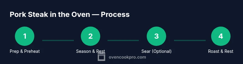 Pork steak, often cut from the shoulder or loin, is a versatile, affordable cut that benefits from slow, even heat to stay juicy. Oven cooking excels here because it surrounds the meat with consistent warmth, letting connective tissue melt gradually without drying out the surface. According to Oven Cook Pro, the best results come from a simple balance of heat, moisture, and time: a quick dry rub to start crust formation, followed by a controlled bake and a rest that redistributes juices. When you choose boneless or bone-in pork steaks, the bone-in variety can add flavor, while boneless cuts cook a bit more evenly and quickly. Thickness matters: a 1-inch steak will need a shorter bake than a 1.5-inch cut, so plan your timing around thickness rather than relying on a single fixed minute count. For best results, pat the surface dry and leave seasonings to penetrate for at least 10–15 minutes, which helps create a flavorful crust. You can adjust salt levels based on your pork’s natural fat; leaner cuts benefit from a bit more salt to enhance aroma and savoriness. Finally, rest is essential: even a modest 5–7 minute rest after baking lets juices redistribute, keeping slices succulent rather than watery.