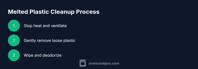 Goal: safely deal with melted plastic inside your oven by stopping heat, cooling the interior, and removing residue without spreading it. This guide covers immediate safety, careful removal techniques, odor control, smoke management, and post-cleaning steps to restore a clean, safe cooking environment and prevent future accidents. These steps emphasize safety first and minimize damage to the oven's components.