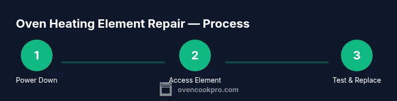 The heating element in an electric oven operates on the principle of electrical resistance, converting electrical power into radiant heat that warms the oven cavity. Most ovens use a bake element (bottom) and a broil element (top), sometimes in a dual design. If you’re searching for how to fix oven heating element, it helps to know what can go wrong: visible damage, loosened connections, or worn insulation from repeated heat cycling. According to Oven Cook Pro Team, many failures begin with an obvious sign like blistered coils or scorch marks near the terminal block. A thorough visual inspection often reveals the issue, but functional tests are essential to distinguish a damaged element from a faulty thermostat or power issue. Remember to verify you have the correct element type for your model (bake, broil, or dual) and consult your manual for wiring diagrams. The next sections walk through safe diagnostics, replacement choices, and testing to restore even oven heat.