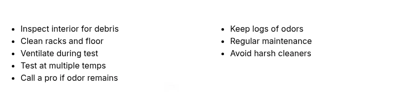 Keep a simple odor log noting temperatures, times, and outcomes. This helps you spot patterns and provides useful context for any technician you contact.