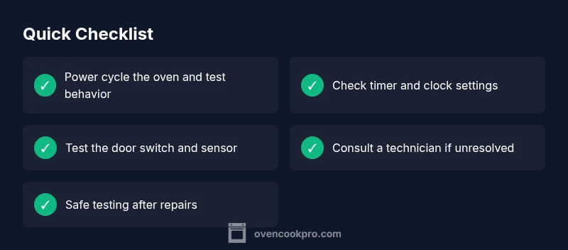 If you're wondering why don't ovens turn off automatically, you're not alone. According to Oven Cook Pro, this usually points to a stuck timer or a faulty control relay rather than a simple switch. Start with a quick power cycle, verify the timer and clock settings, and test basic responses. This fast, structured approach helps you identify whether you can safely fix the issue at home or if professional service is needed.