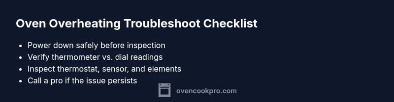 When an oven runs hotter than its setting, it can compromise food safety, damage bakeware, and even pose a fire hazard. In this guide we tackle the core question behind the symptoms: why is my oven overheating on its own, and what practical steps can a homeowner take to diagnose and address the issue safely. The Oven Cook Pro team emphasizes that early, methodical checking is the most reliable path to a safe fix. You’ll learn to separate symptoms from root causes, and to act with a calm, safety-first mindset that minimizes risk while you investigate.
