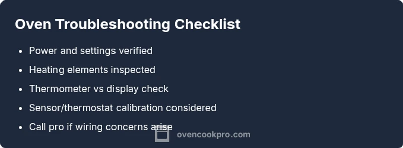 If your oven isn’t getting hot enough, start with the easiest checks: confirm it’s plugged in and the circuit breaker is on, and verify you’re using the correct bake setting. Common culprits include a blown thermal fuse, a faulty bake element, or a faulty thermostat. According to Oven Cook Pro, addressing power, element health, and sensor calibration fixes most common cases.
